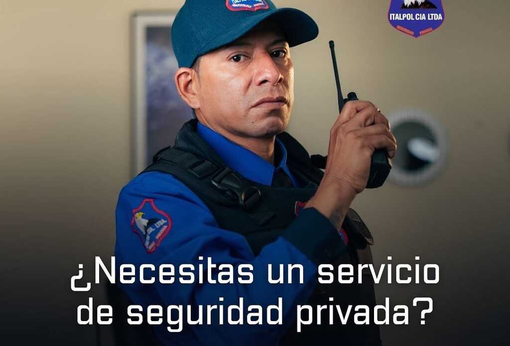 En ITALPOL CIA. LTDA. protegemos lo que más valoras. Brindamos soluciones integrales de seguridad privada con personal altamente capacitado, tecnología adecuada y estrategias diseñadas a la medida de cada cliente. Ofrecemos vigilancia profesional, control de accesos, rondas preventivas y asesoría especializada, siempre con un enfoque en la prevención, la confianza y la respuesta oportuna. Más que un servicio, somos tu aliado estratégico en seguridad.